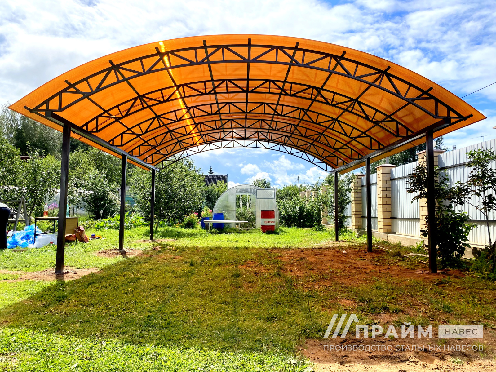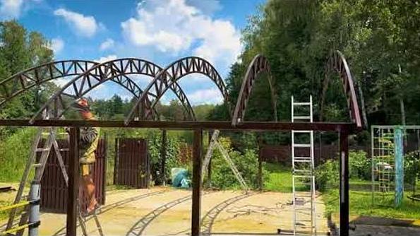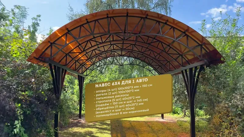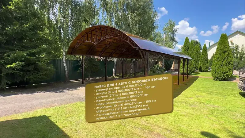 Реализуем такие проекты, как парковки, крытые зоны отдыха и барбекю, козырьки над входом, отдельно стоящие и пристроенные укрытия, беседки. Мы предлагаем сотни проектов арочных, односкатных, двухскатных сооружения для установки на частных и коммерческих площадях.
