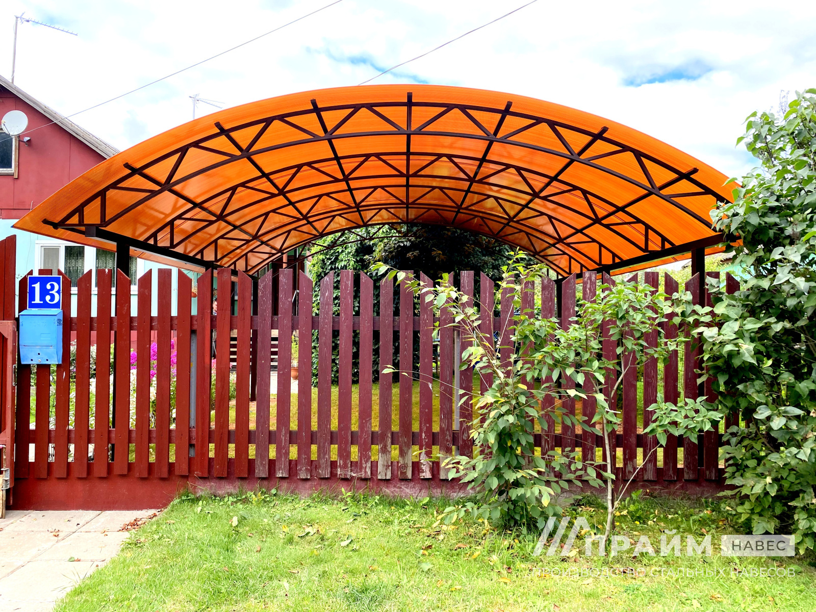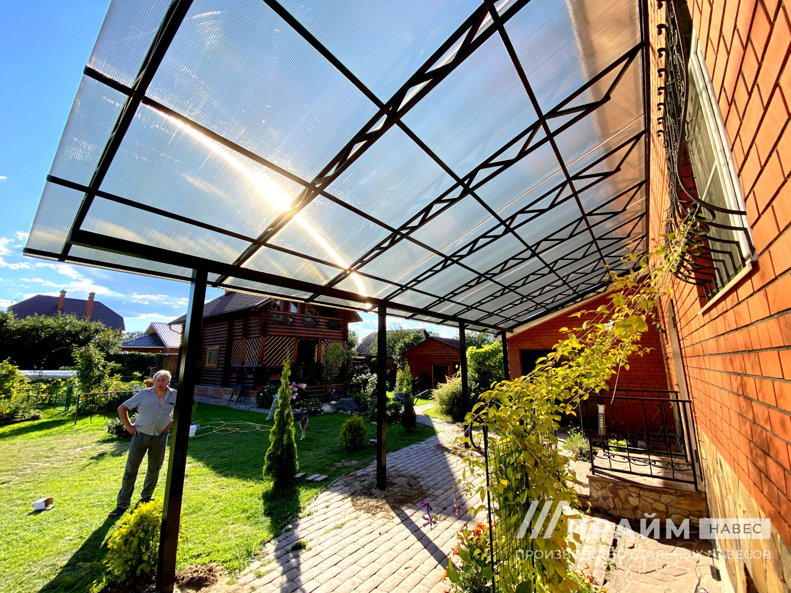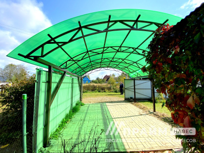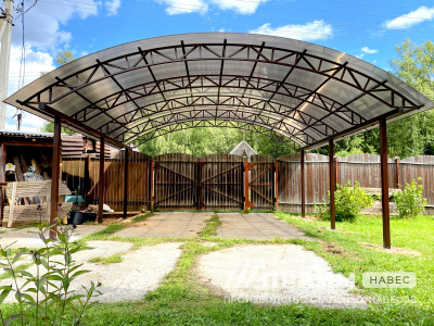 Дополнительно к каждому фото навесов из поликарбоната создано подробное описание. Указаны используемые материалы, особенности монтажа, эксплуатационные качества. Приводится точный срок выполнения заказа, его стоимость. Набор фото с несколькими ракурсами позволят полностью оценить внешний вид, размеры.